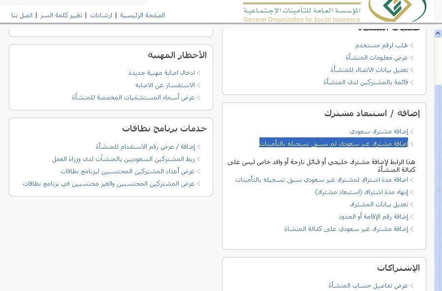 [box type=”tip”]إضافة مشترك غير سعودي لم يسبق تسجيله بالتأمينات[/box]