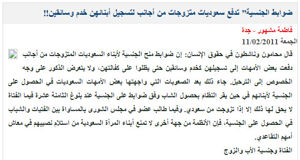 لم تكتف الأنظمة التي تعامل بها المواطنة السعودية المتزوجة من غير أبناء وطنها بما فيها من صعوبات تواجه أي مواطنة قدر الله عليها أن يكون نصيبها وشريك حياتها غير مواطن، وتواجه أبناءها وبناتها مدى حياتهم في دراستهم وإقامتهم وسفرهم وحضرهم وتعاملهم ومعاملاتهم ونشاطهم وعملهم، لم تكتف الأنظمة بذلك موصدة أبواب الأمل في وجه المواطنات المتزوجات من غير أبناء الوطن، فزادت من صعوبة التعامل وقسوته بأن جعلت أي ابن أو ابنة للسعودية مرغمين على استخراج إقامة منفـصلة عن إقامة والدهم بعد بلوغهم الثامنة عشرة من عمرهم، مع البحث عن كفيل لهم لاستكمال إخراج إقامة مستقلة فإذا أبدت المواطنة «الأم» رغبتها في أن تكون هي الكفيل لابنها أو ابنتها، فلا بد من مسمى يوضع أمام خانة «المهنة»، وبما أن معظم المواطنات إما موظفات أو ربات منزل وليس لهن نشاط تجاري فليس من حقهن تشغيل أي نوع من أنواع العمالة إلا العمالة المنزلية وهي في حدود سائق بالنسبة للرجل وخادمة بالنسبة للمرأة، فإذا تقدمت مواطنة لكفالة ابنتها التي قد تكون جامعية فليس هناك مسمى لمهنة هذه المكفولة سوى «خادمة» وإن كان المطلوب كفالته ابنها الجامعي فإن المسمى المهني الذي سيحظى به في دفتر الإقامة هو «سائق» حتى لو كان متخرجا من كلية الهندسة، وعلى هذا الأساس يعامل رسميا، فإن راجعت تلك المواطنة رجال الجوازات في هذا الأمر باحثة عن مسمى آخر يوضع لابنها أو ابنتها خانة المهنة، أخبروها أنه لا يوجد لديهم بالنسبة لها ولهم سوى اللقبين الفاخرين سائق وخادمة، فيزداد ألمها وألم أبنائها وبناتها من قسوة الأنظمة التي يعاملون بها وينتطرون من الله الرحمة ثم من الراحمين!.